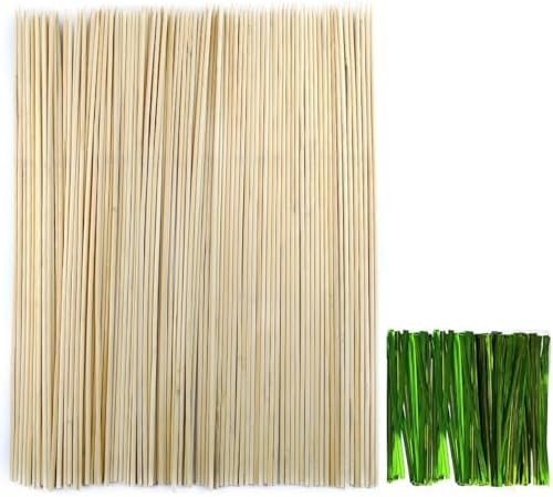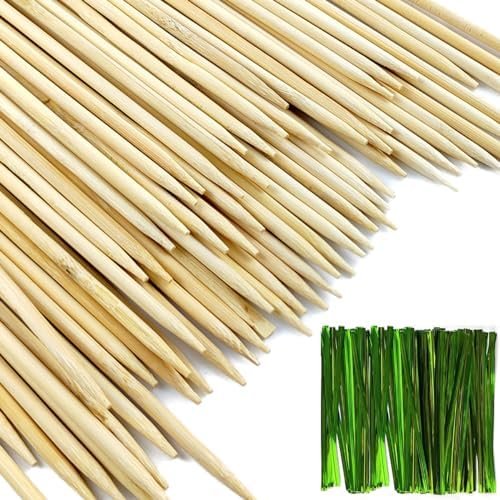 Package include: 100PCS 18” Garden wood plant stakes, 100PCS green metallic twist ties.