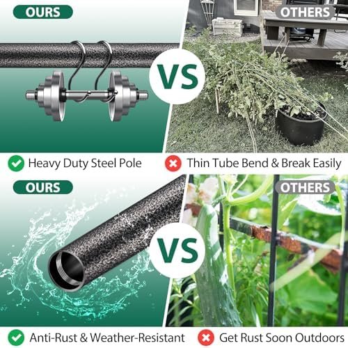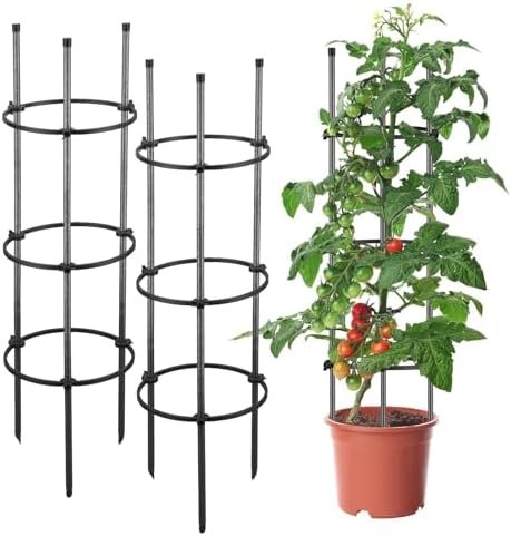 Heavy Duty: Made of coated steel, these tomato trellis are sturdy enough to support the weight of your tomato crop and prevent plants from toppling over in the wind. This tomato cage comes with waterproof caps on the stakes prevents rainwater from rusting the inside.