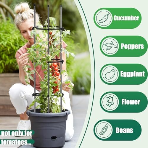 Multi-Use: The 2 pack plant trellises are well suited for a variety of vining plants in addition to tomatoes, such as cucumbers, beans, peas, eggplants, melons, and even flowers. Perfect for your balcony, patio, garden, yard, raised bed and indoor pot containers.