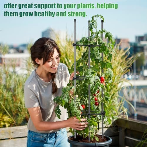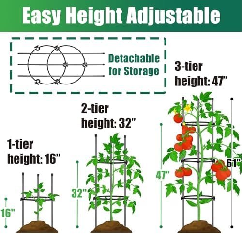 Tall & Adjustable: You can set the 3-tier metal tomato cages all up at once or add levels as the plant grows. By encouraging upward growth and improving air circulation, our tomato cage will yield healthier, juicier, and more plentiful tomatoes.