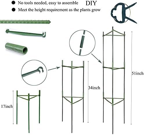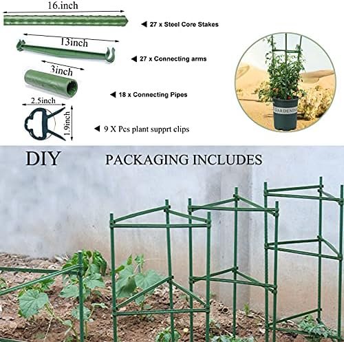 Package Include: Total 3 Sets Tomato Plant Cage With Bonus 9Pcs Clips. Make a quick job of adding additional support. Easy to assemble, No Tools and Minimal Times to Set up Around the tomato plants or Other Climbing Plants. Provides continuous support throughout the plant’s growth.