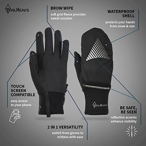 443443443443 TrailHeads Women’s Touchscreen Convertible Running Gloves with Reflective Waterproof Mitten Shell – 4zera3a