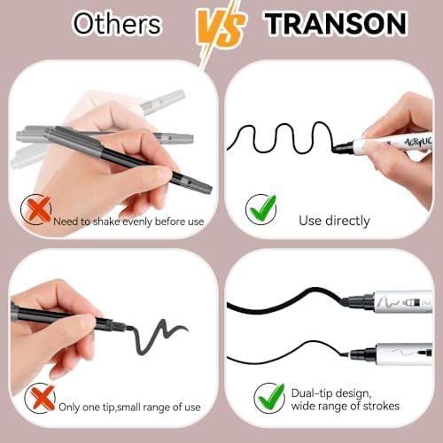 Transon high-quality acrylic paint pen set is water-based formula, non-toxic, confirms to ASTM D-4236, safe to use. They are also waterproof and quick-drying acrylic paint pens! Making your artwork or writings stay strong even in harsh outdoor conditions.