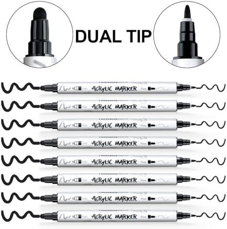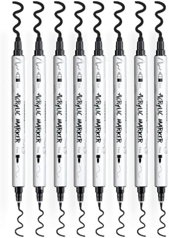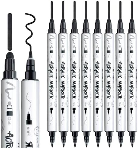 TRANSON Black Acrylic Paint Pen 8 Pack Dual-tip for DIY Glass Canvas Wood Leather Ceramic Rock Painting