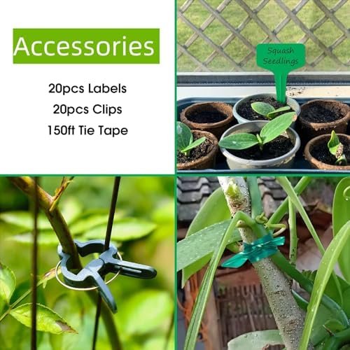 The Kit Includes: 10pcs 10×16 inch garden stakes, 20pcs plant clips (10 large+10 small), 20pcs plant labels and a roll of 150 foot twist ties. The plant stakes kit contains almost all the plant support accessories you need, which is absolutely worth it!