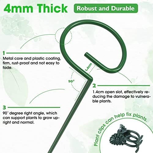 Beautiful Appearance: The flower support has beautiful lines and smooth surface, simple and generous. The appearance of dark green can be naturally blended into green plants to achieve an almost invisible effect. Besides, 40 small plant clips can make plants better attach to plant piles.