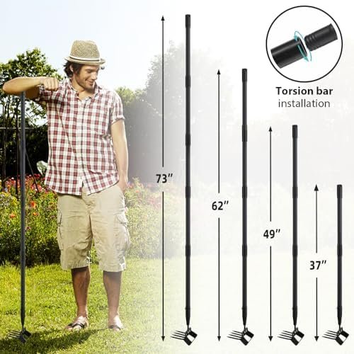 73-Inch Adjustable Handle – The long handle can be adjusted to 73 inches to accommodate gardeners of different heights, helping to prevent back pain by reducing the need to bend. It’s easy to adjust and securely locks in place to ensure stability and comfort.