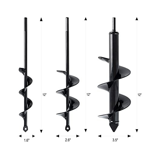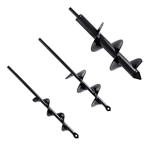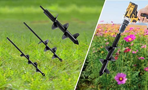 Set of 3 Bulb Planting Auger: 1.6×12″, 2.6×12″, 3.5×12″ – Auger Drill Bit for tulips, iris, bulbs, bedding plants, and seedlings. Also great for digging weeds up by the roots. Quickly digs holes up to 16 inches deep and 3.5 inches wide using the power of your hand held drill.