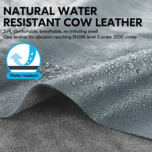 GENUINE ABRASIVE COW LEATHER – 0.8-0.9mm Water resistant, soft, comfortable, breathable, no irritating smell cow leather for abrasion reaching EN388 level 3 under 2000 circles, and tear resistance reaching level 3 under 50N