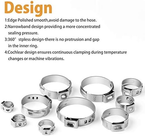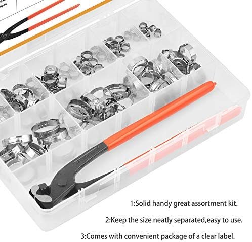 【Crimping Plier Tool】: An useful Ear Clamp Pincer are included in this kit, with plastic coated handle, which is convenient for your installation widely applied to single ear hose clamps, double ear clamps, stepless clamps, etc. Convenient for your installation.