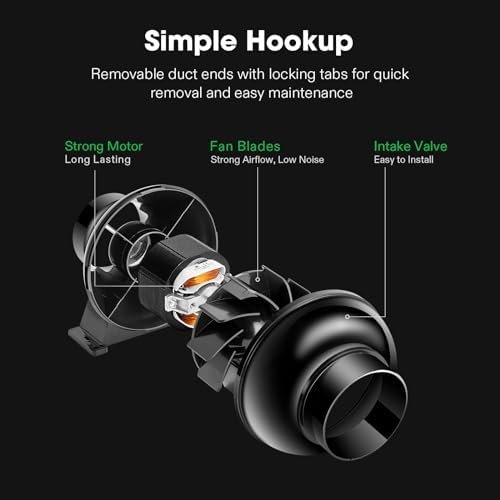 Simple Hookup: The flanges on both the intake and exhaust ends are simple to assemble with the vent hose by locking tabs; A cord of 5.9-feet long for hassle-free setup; The housing, even the impeller and blades, are easy to detach for cleaning and maintenance