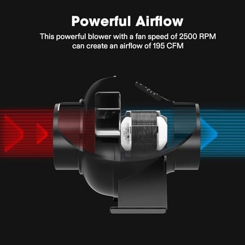 Powerful Airflow: This VIVOSUN powerful blower with a fan speed of 2500 RPM can create an airflow of 195 CFM; It works efficiently in ventilating grow tents, transferring heat or cool rooms, circulating fresh air, as well as controlling proper humidity, temperature, and air quality for your grow area
