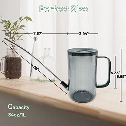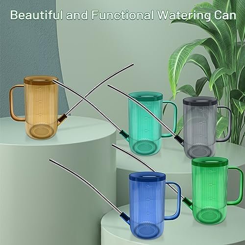 [SET BEAUTIFUL AND PRACTICAL AS ONE]-Watering can indoor plants is made of high quality plastic with surface smooth and comfortable to touch, the wall of the kettle is thicker, more wear-resistant, anti-drop and compression. The appearance design is exquisite and compact, the water can body has clear texture, looks crystal clear in the light, watering can is not just a gardening tool, but a simple and modern decoration, soft color well matching various home styles.