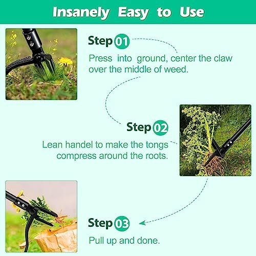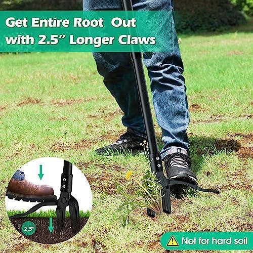 2.5” Longer Claws: Weed puller with 2.5” long claw is perfect for picking out entire longer taproot,fibrous root and grass roots without breaking them off