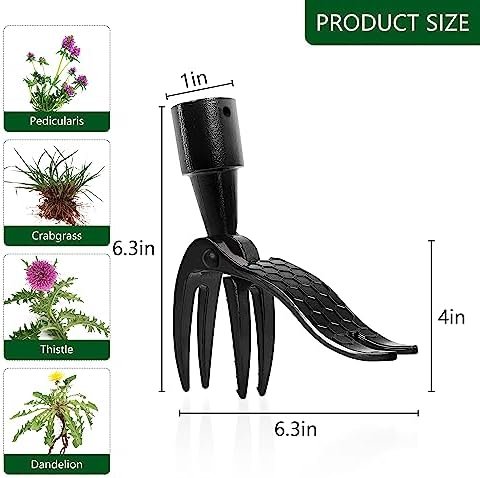 【Easy to Use and Effective】Just insert the weed, foot on the steel claw, you can easily grab the roots of the weed and pull it out from multiple directions, this gardening hand tool is suitable for crabgrass, thistle, straight root, crabgrass, straight root, plantain, alfalfa, burdock, shrubs, etc.