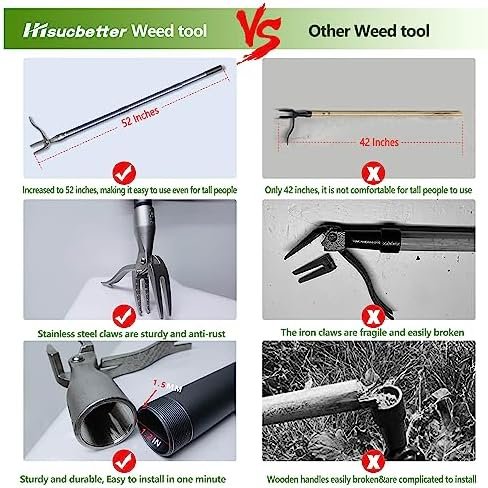 Efficient Weed Puller: The Hisucbetter Weed Puller is a must-have tool for every gardener. Its heavy-duty stainless steel claw head allows for easy and efficient removal of weeds from your garden or lawn.