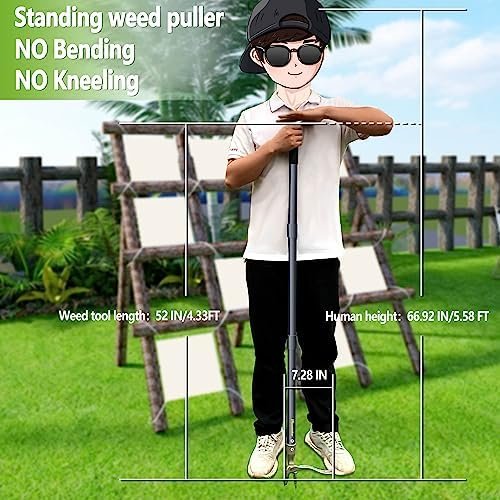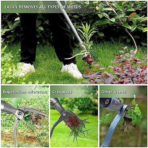 Long Handle Design: With a 52″ metal handle, this weed puller tool stand up heavy duty provides extended reach, enabling you to remove weeds without bending over. This ergonomic design helps reduce strain on your back and knees, making it comfortable to use for extended periods.