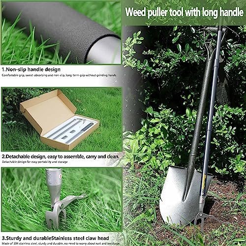 Durable Construction: Made with high-quality materials, this Heavy duty weed puller is built to last. The stainless steel claw head is resistant to rust and corrosion, ensuring long-term durability and reliable performance.