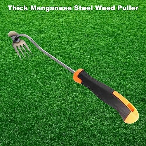 Weeding Tool,Weed Puller with Handle Manual Hand Weeder Tool 4 Teeth Dual Purpose Weeder High Strength Garden Weed Removal Tool for Garden Yard Farm (Rubber Handle)