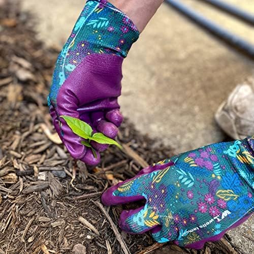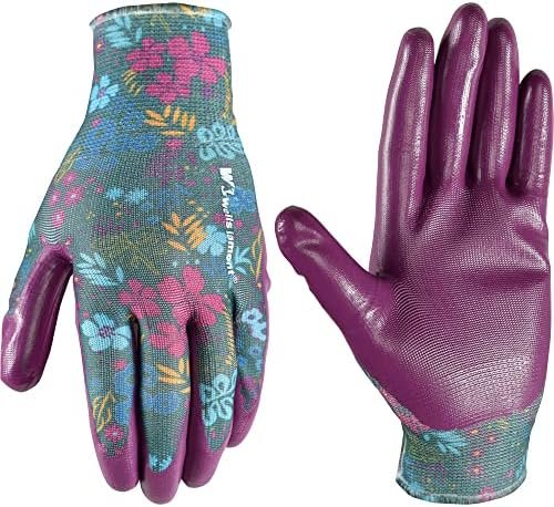 Wells Lamont Women’s Botanical Print Nitrile Coated Work and Gardening Gloves, Medium (497M)