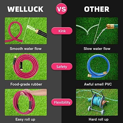 All Weather Flexible: The UV-resistant material prevents the hose from fading or hardening outdoors in summer, and the rubber component keeps the hose flexible and not stiff in cold winter, still easy to coil and unwind. Temperature Limits: -45°F to 150°F.