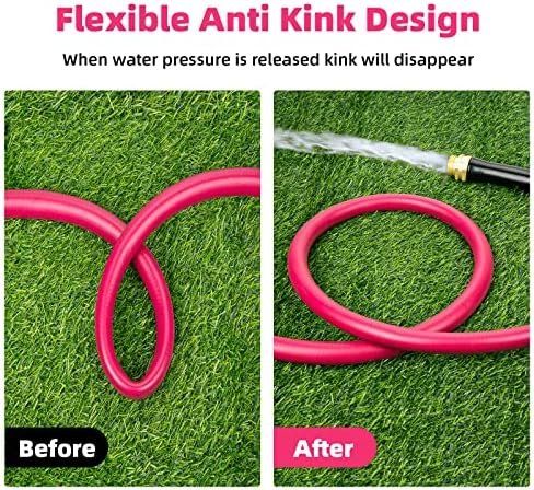 No Kinks Under Water Pressure: The garden hose is very flexible, the open water supply system kinks will straighten automatically under water pressure, and can withstand 600PSI burst pressure and 200PSI working pressure.