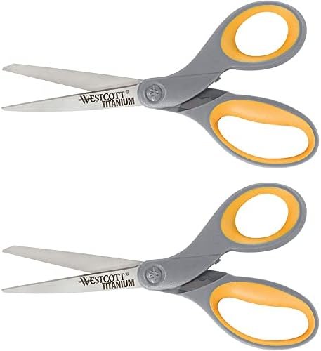 Westcott 13901 8-Inch Titanium Scissors For Office and Home, Yellow/Gray, 2 Pack