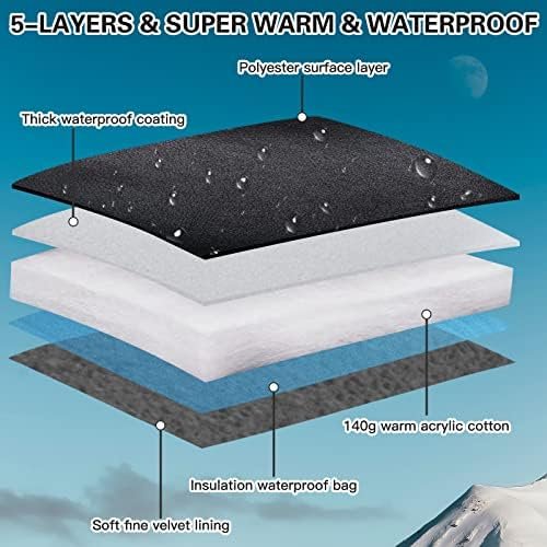UPGRADED 5 LAYERS OF THICK GLOVES: The waterproof gloves are constructed in 5 layers including windproof T800 four-sided elastic surface polyester, over 140G premium cotton, and ultra-soft polar fleece lining, which is isolated your hands from cold even in -20℉ weather.
