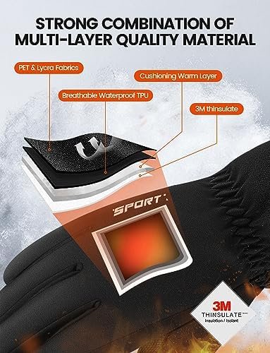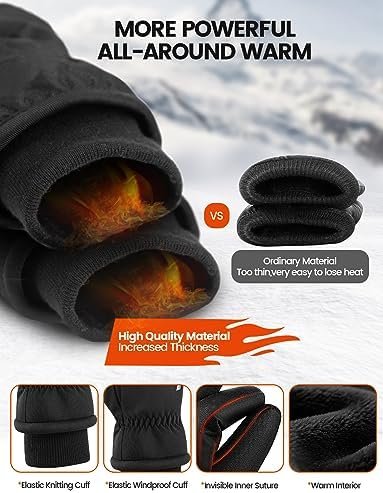 【Upgraded Warm Winter Gloves】Our winter gloves have been upgraded to provide superior warmth and comfort. They feature PET and Lycra fabric shells, high-quality thickened 3M Thinsulate insulation, breathable waterproof TPU, thicken fleece lining, full-palm conductive microsuede leather, elastic knitted cuffs, and invisible inner stitching. This perfect blend of premium materials ensures both warmth and style, allowing you to venture out with confidence and cozine