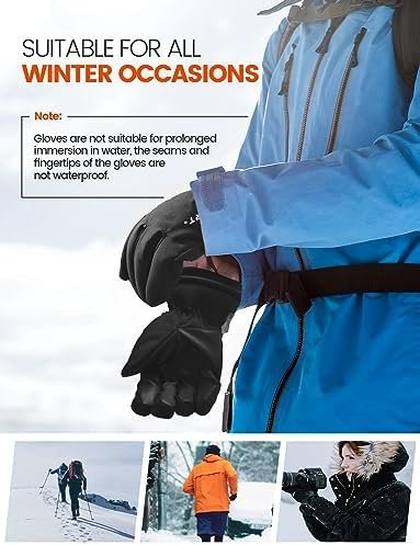 【Waterproof & Windproof】 Our gloves are built to withstand the elements. The high-quality waterproof shell ensures your hands stay dry in snow or light rain, while the waterproof TPU membrane acts as a barrier against icy winds and cold water. With extended elastic wrists and adjustable buckle wrist straps, these waterproof snow gloves are designed to fend off cold winds, water, and snow. Please note that these winter ski gloves are not intended for prolonged immersion in water, as the seams and