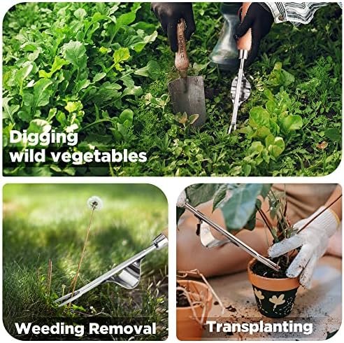 Durable and Sturdy: Made of high hardness polished stainless steel, the weed puller is extremely resistant to rust and corrosion, ensuring longevity and reliability. And which won’t bend or break during use, quickly meet any challenges in gardening. The one-piece metal shaft leverages against the ground, making it easy to tackle dandelions, thistles, and other weeds while leaving surrounding plants intact.