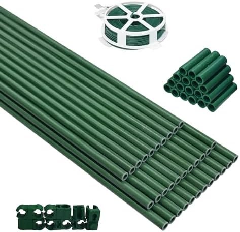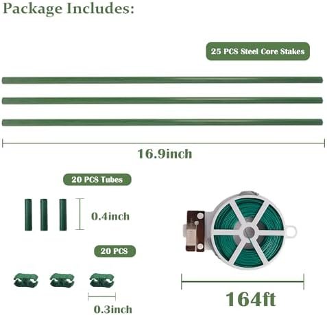 PACKAGE INCLUDES: You will get 25 Pcs 17″ plant plastic stake, 20 Pcs Connecting pipe, 20 Pcs universal buckle and 164 Ft plant tie.
