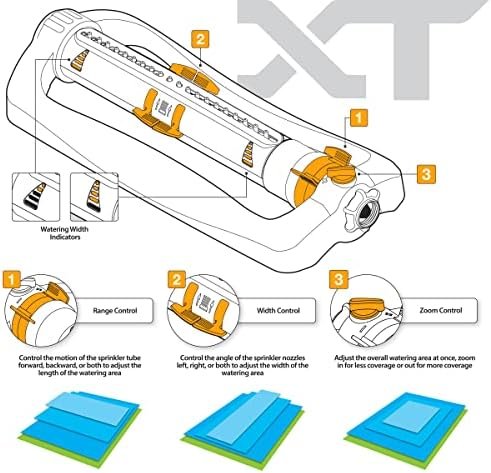 Zoom Control adjusts the overall watering area. Zoom in for a small patch of newly seeded lawn or all the way out to cover a large section of the yard.