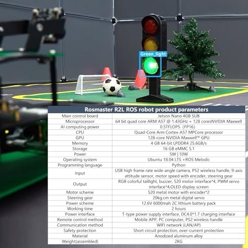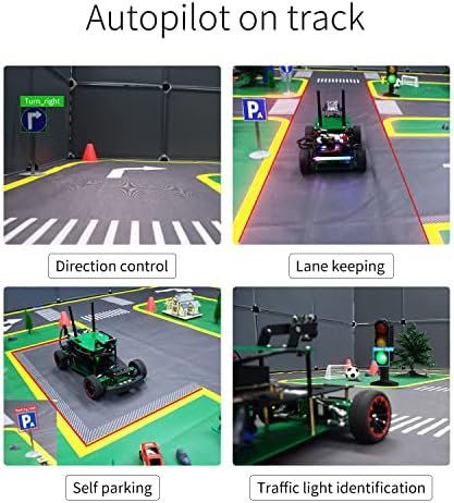 The self-driving version comes with a 3.2 x 2.8m (125 x 110 inches) curved driving map. The R2L robot kit has trained a model for this map and can drive directly.