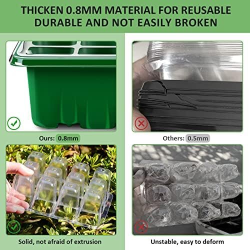 Thicken 0.8mm Material: Compare with other 0.5mm plastic material, our seed trays use 0.8mm PVC material for reusable, durable and not easily broken. (Note: Please avoid prolonged high-temperature exposure over 48°C)