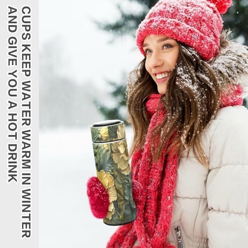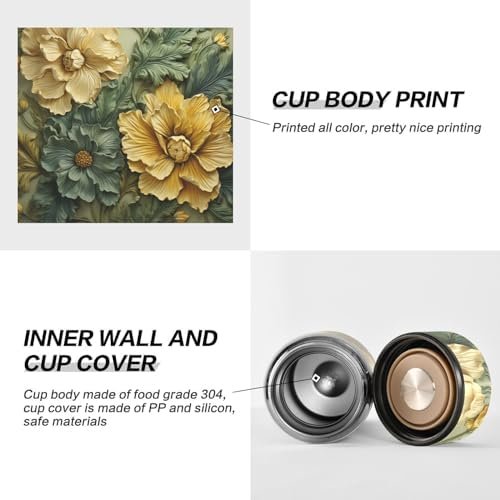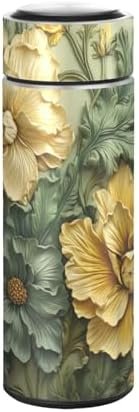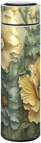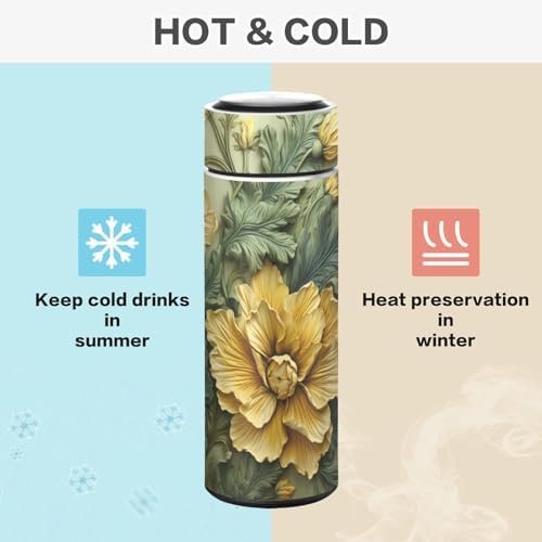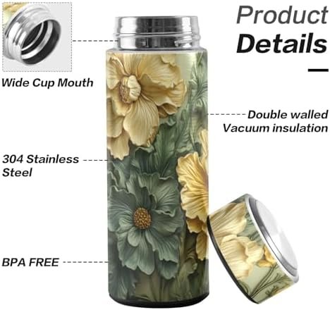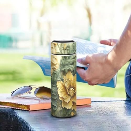 Yellow Watercolor Floral Pattern Water Bottle Stainless Steel Insulated Vacuum Flask Leak Proof Thermos for Boys Girls