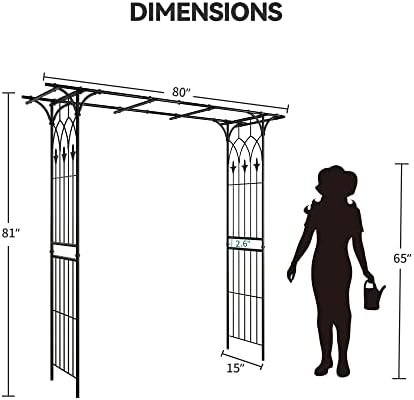 Perfect Addition: Measuring 80″L x 15″W x 81″H with delicate lines and elegant scrollwork, this garden trellis arch complements any decor and creates a clear walkway.