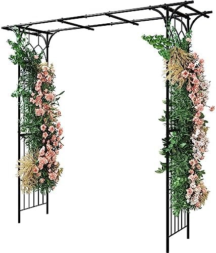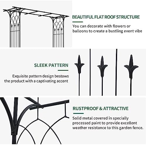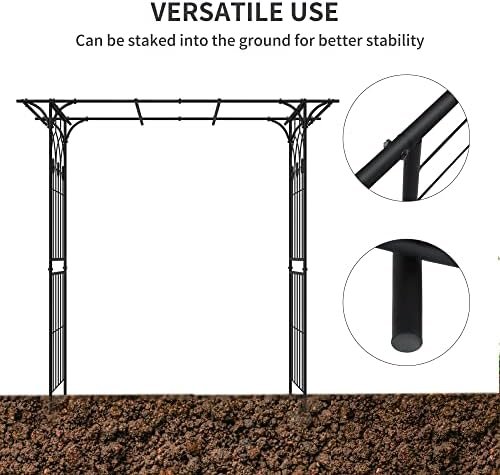 Durable & Stable: Sturdy steel is coated with weather-resistant black epoxy to ensure stability and prolonged outdoor use; Reinforced supporting frame at the bottom allows the garden arch to withstand weather elements.