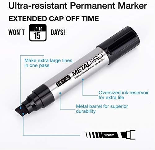 USA Brand ZEYAR. MULTI-USAGE: Jumbo size permanent with extra wide and highly visible lines, Felt chisel tip enable you to mark or draw on corrugate, wood, leather, metal, rock, plastic, ceramic and almost all surfaces, in wet or oily conditions.