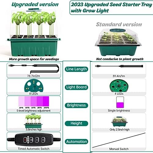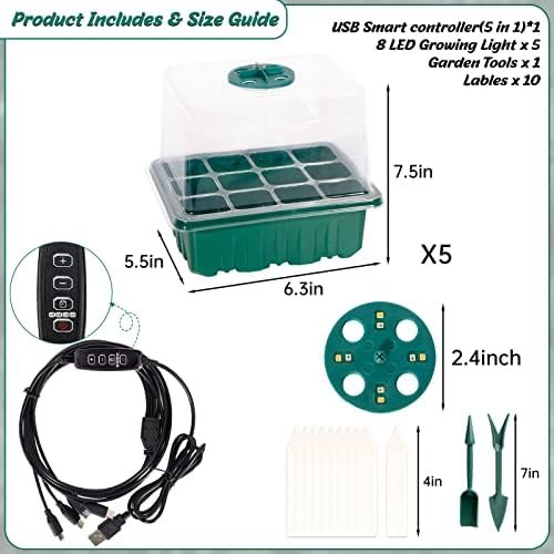Package Includes: You will receive 5 pack seed starter kits. ( Including USB Smart Controller* 5pc, 8 Lamps Growing Light*5pc, Clear Cover*5pc, 12 cells Seeding Tray*5pc, Base Tray*5pc, Plant Lables*10pc, Garden Tools*2pc). Each cell size: 1.79×1.79×2.48”