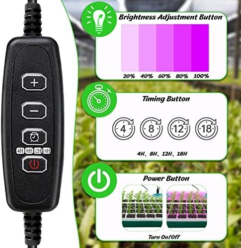 Smarter Timing System: The 5-in-1 USB smart controller is connected with a timer, which can adjust the light intensity and timing duration.It will memorize the current timing mode including 4H, 8H, 12H and 18H.This alowing seeds to germinate and grow in any season.